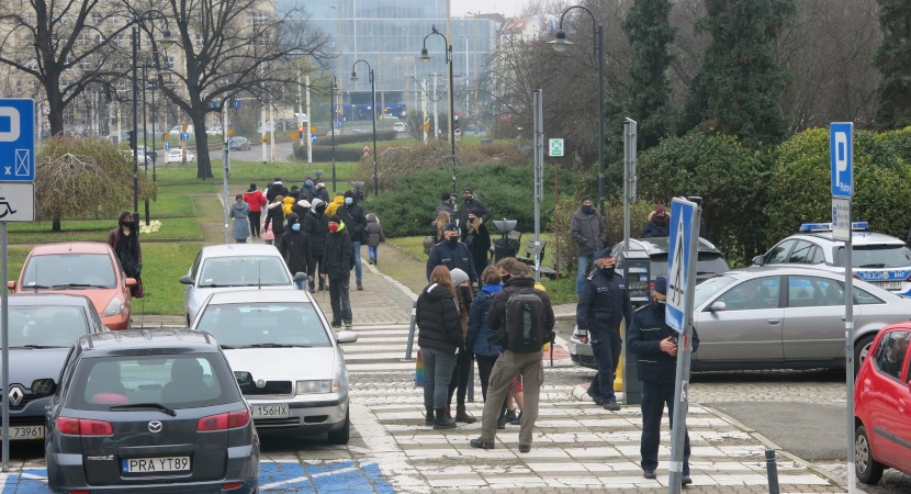 Wokół Urzędu Wojewódzkiego już przed godziną 12.00 zgromadziły się znaczne siły Policji. Nadawane przez megafon z policyjnego radiowozu komunikaty wzywały do nie grupowania się osób oraz rozejścia się.
