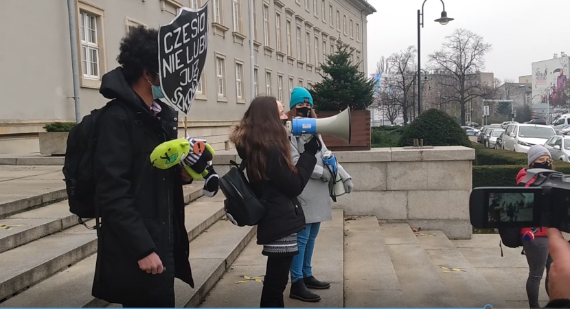 - Jako uczennice i uczniowie - podobnie jak nauczycielki i nauczyciele, ale i osoby strajkujące w obronie praw kobiet - odczuwamy niepokój. Niepokój związany z obecną sytuacją. Niepokój związany z (w dalszym ciągu) zaniedbanym zdalnym nauczaniem. Niepokój związany z maturami. Niepokój związany z osobami sprawującymi pieczę nad polską oświatą. Niepokój związany z naszą przyszłością - pisali organizatorzy zapowiadając dzisiejszy protest.