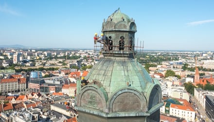 Pozłacane kule ozdobiły wieżę kościoła garnizonowego [ZDJĘCIA I WIDEO]