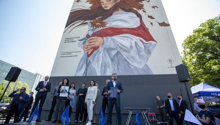 Biało-czerwono-biało pod białoruskim muralem na Legnickiej