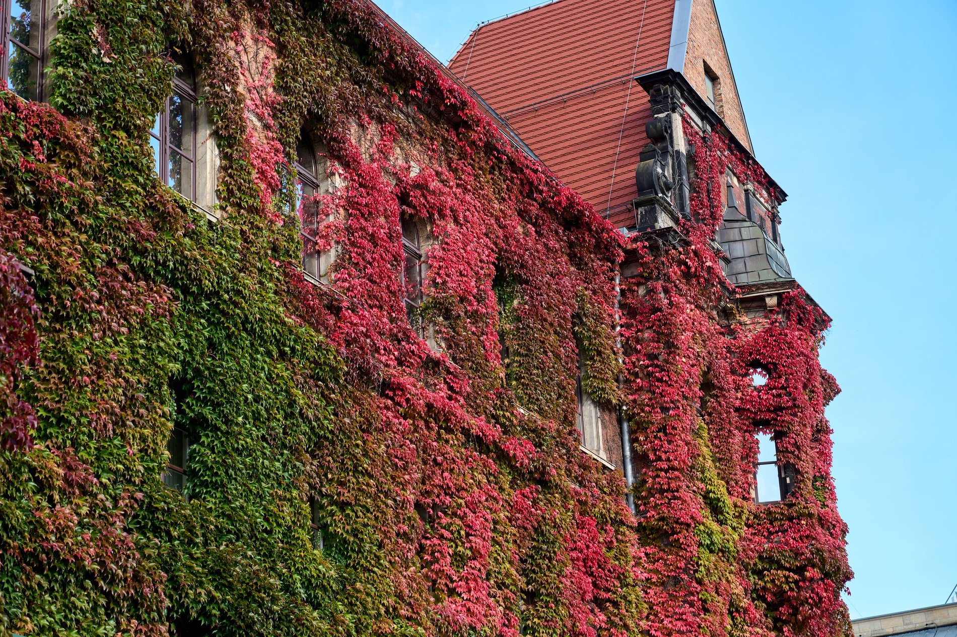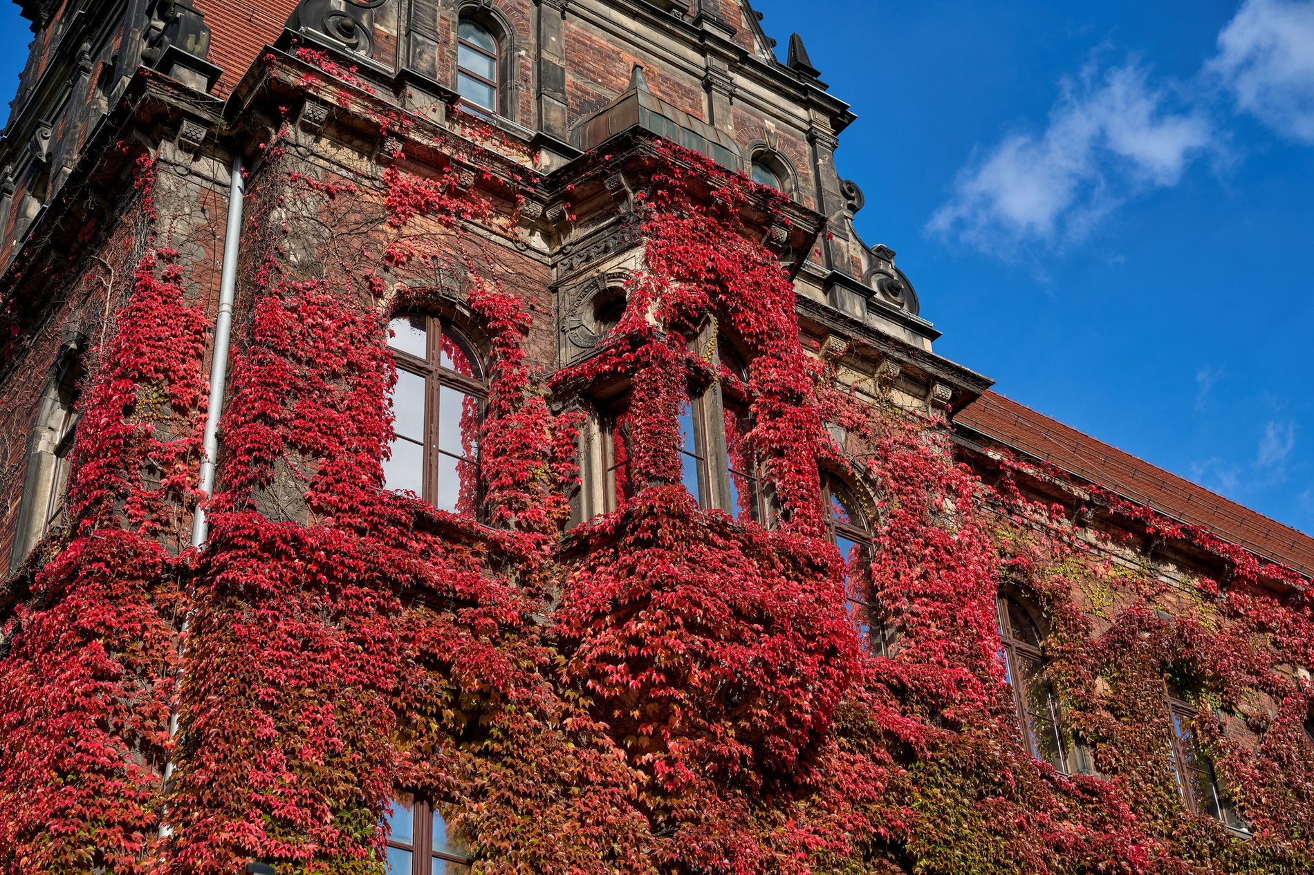 Pokryty kolorowym winobluszczem, zabytkowy gmach Muzeum Narodowego przy pl. Powstańców Warszawy to jesienią jedno z najbardziej instagramowych miejsc we Wrocławiu! Elewacja opleciona liśćmi w barwach zieleni, czerwieni i złota wygląda zjawiskowo. Warto się tam wybrać na jesienny spacer, a przy okazji zobaczyć ciekawą wystawę.