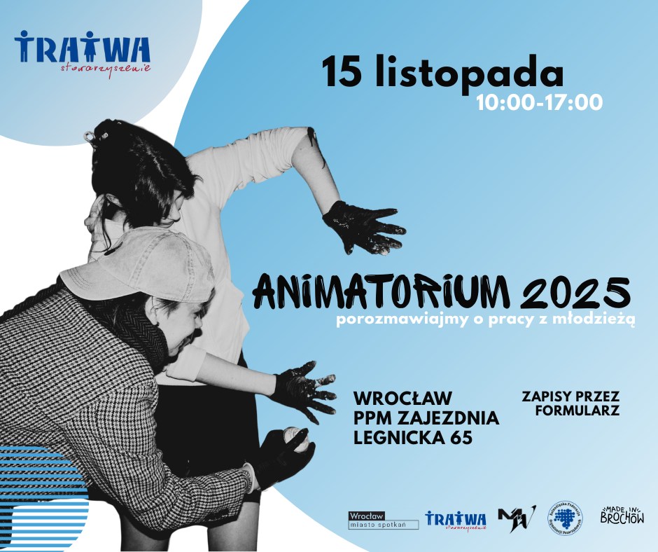 Już 15 listopada w Pracowni Projektów Międzykulturowych Zajezdnia odbędzie się kolejna edycja Animatorium – wyjątkowego wydarzenia poświęconego pracy z młodzieżą, organizowanego przez Stowarzyszenie TRATWA i grupę branżową ds. nieformalnej pracy z młodzieżą Młody Wrocław. To jednodniowa konferencja z elementami warsztatów poświęcona tematowi pracy z młodzieżą. Podczas tegorocznej edycji uczestnicy będą mieli szansę przyjrzeć się przykładom pracy z młodzieżą chętnych organizacji, wysłuchać panelu eksperckiego o aktualnym stanie i przyszłości youth workingu w Polsce, wziąć udział w pracach koncepcyjnych na wybrany temat, a co najważniejsze nawiązać kontakt z innymi osobami i organizacjami z branży! To przestrzeń do wymiany doświadczeniami, nawiązania nowych kontaktów, a przede wszystkim poszukiwania odpowiedzi na pytanie – jak można działać żeby zwiększyć widoczność streetworkerów, animatorów, a przede wszystkim, samej młodzieży? Dlaczego warto o tym mówić? Bo nieformalna praca z młodzieżą każdego dnia zmienia życie tysięcy młodych ludzi – daje im przestrzeń do działania, rozwoju i wiary w siebie.