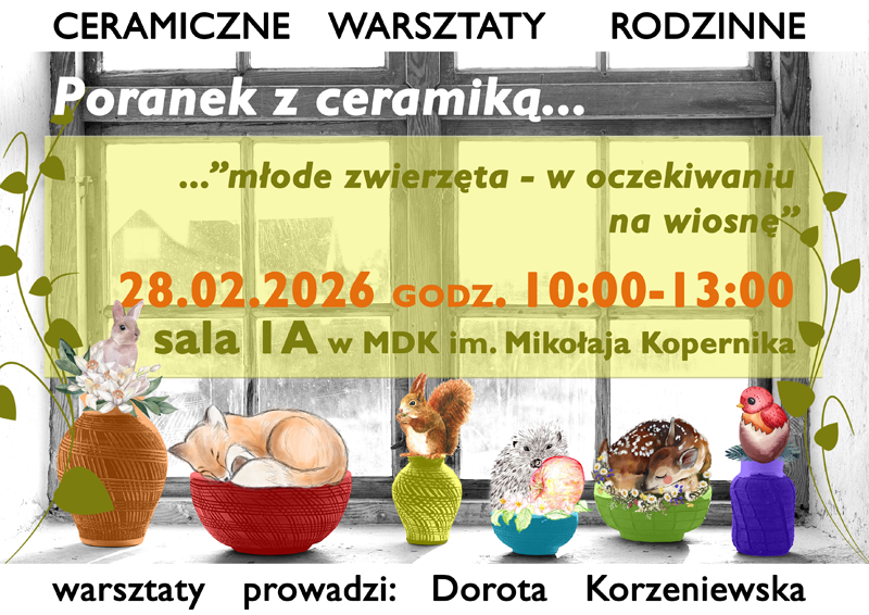 Młodzieżowy Dom Kultury im. Mikołaja Kopernika, ul. Kołłątaja 20, zaprasza na kolejne ceramiczne warsztaty rodzinne z cyklu „Poranek z ceramiką…”.