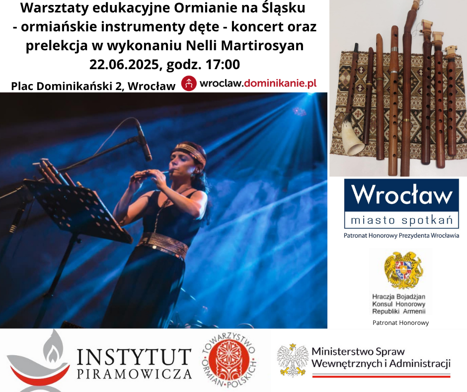 Zapraszamy na pierwsze w tym roku warsztaty edukacyjne Ormianie na Śląsku – ormiańskie instrumenty dęte – koncert oraz prelekcja w wykonaniu Nelli Martirosyan