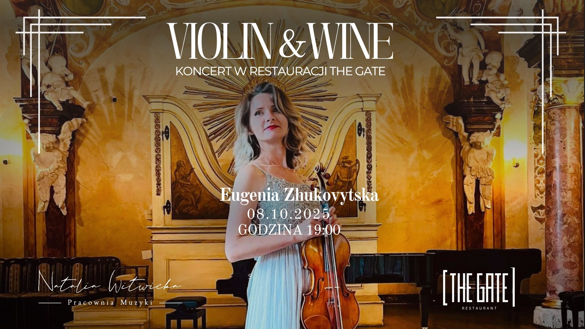 Jesienne wieczory sprzyjają kameralnym spotkaniom, a my zapraszamy Cię na szczególny koncert – pełen dźwięków skrzypiec i wyjątkowych smaków. Tego wieczoru w restauracyjnych wnętrzach The Gate wystąpi Eugenia Zhukovytska – skrzypaczka, która zabierze nas w muzyczną podróż przez znane i lubiane melodie w autorskich, współczesnych aranżacjach. W repertuarze znajdą się zarówno nowoczesne covery, jak i nastrojowe kompozycje, które idealnie współgrają z klimatem miejsca.