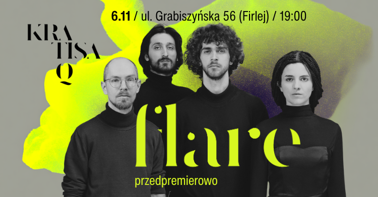W Kratisa Q spotyka się wiele światów: echa starożytnych mitów i współczesna codzienność, poszukiwanie struktury i swoboda improwizacji. To kwartet, który gra według własnych zasad – bez patosu, z otwartością i uważnością na dźwięk. Debiutancki album „Flare” przywołuje te tradycje muzyczne, które są już w zasadzie wyblakłe, dostrzec można tylko ich nasycony zapomnieniem chwilowy refleks. Starogreckie melodie niczym rozbłysk odległej gwiazdy przypominają o swoim istnieniu, same pozostając nieuchwytne w dalekiej przeszłości. Autorskie, osobiste kompozycje skłaniają do pytania o to, co pierwotnie piękne i niezmienne. To fuzja antyku, bluesa z Pireusu i współczesnej, indywidualnej wrażliwości.