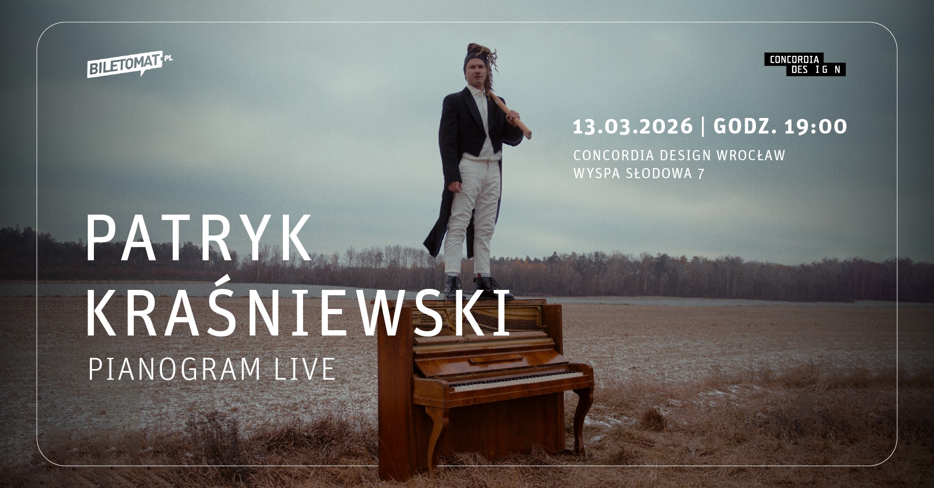 Zapraszamy na wieczór pełen emocji i nieoczywistych brzmień z Patrykiem Kraśniewskim, artystą współpracującym m.in. z Spiętym, Vavamuffin i Pauliną Przybysz. Podczas koncertu zaprezentuje materiał ze swojego debiutanckiego albumu „Pianogram”.