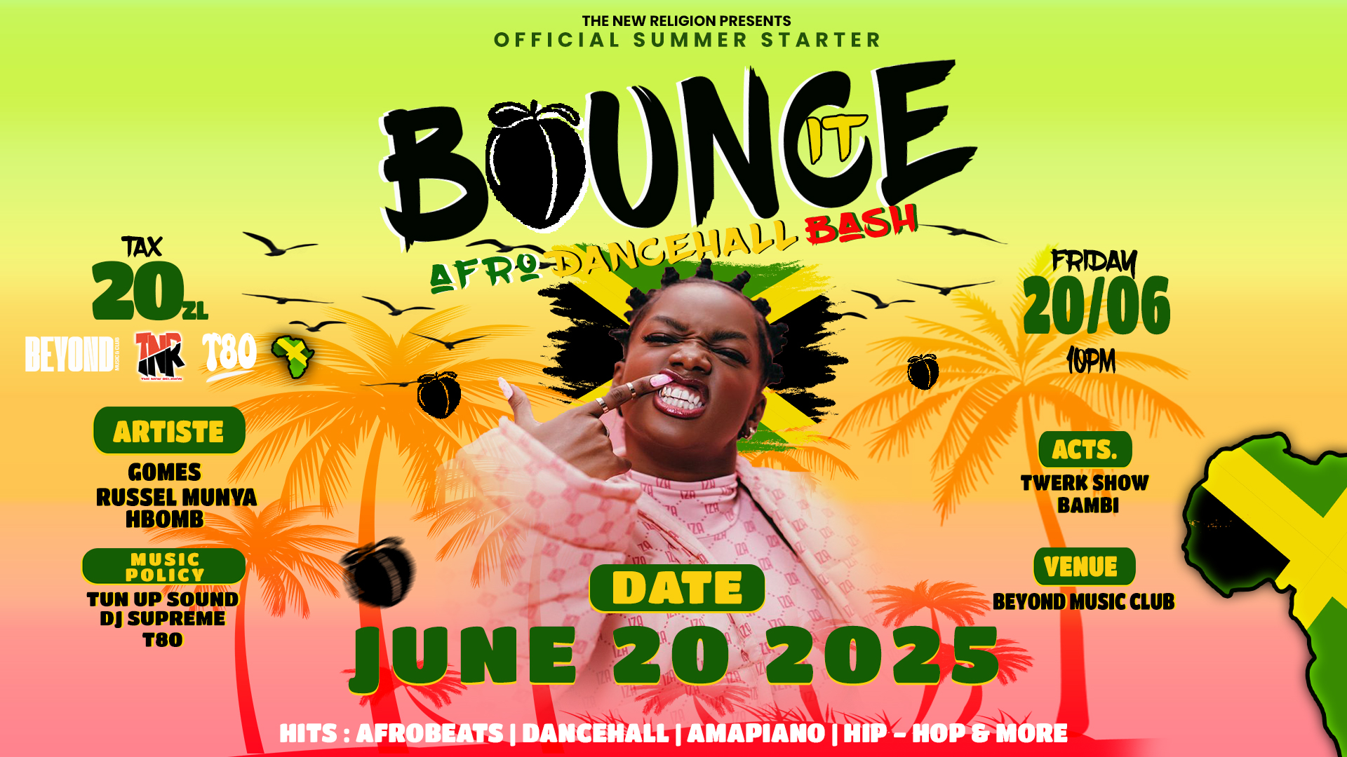 Zapraszamy na Afro Dancehall Bash w Beyond Music Club! Afrobeats i dancehall przez całą noc — najlepsze hity i energetyczna atmosfera.