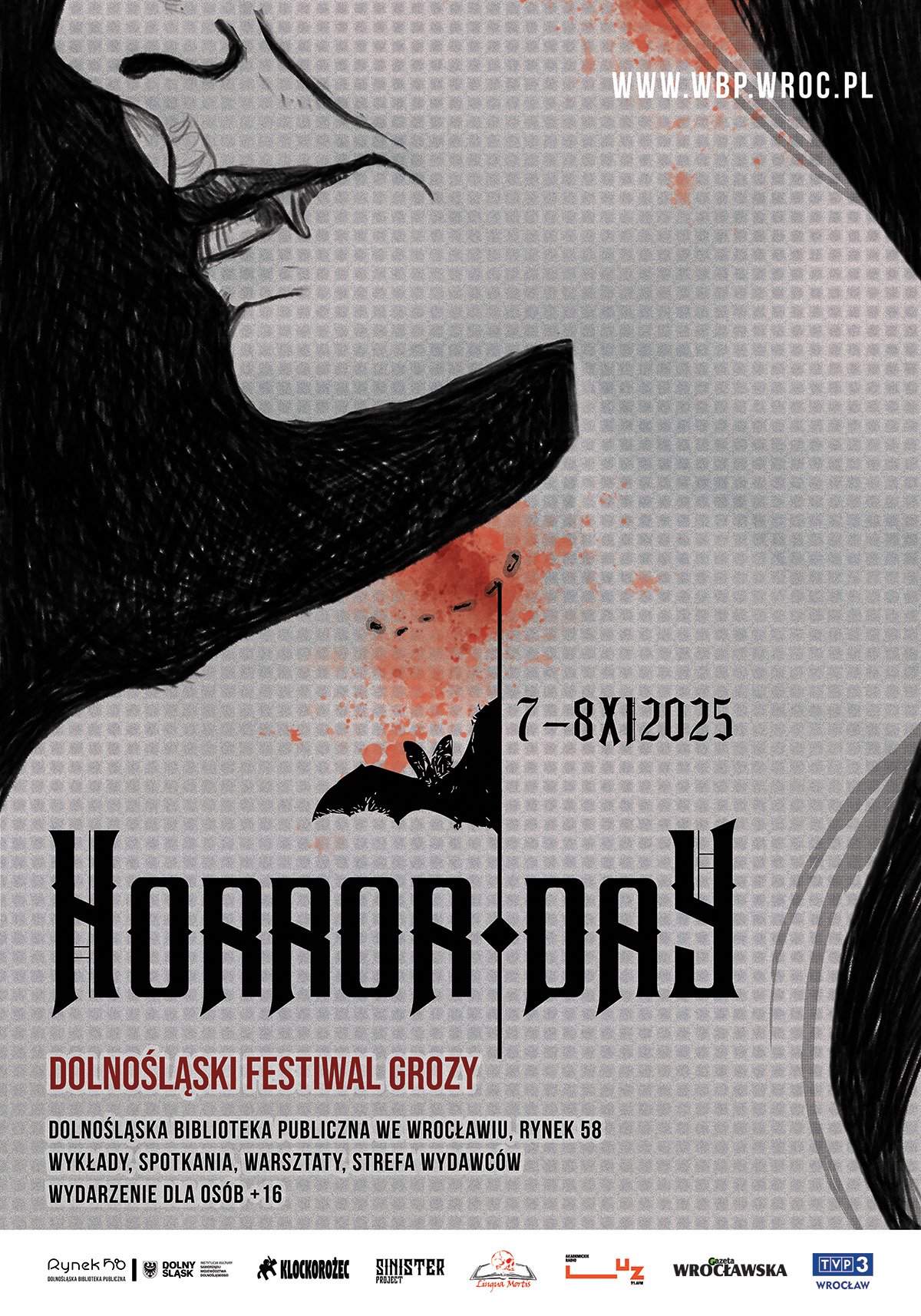 Mroczne opowieści, spotkania z autorami, wykłady popularnonaukowe i twórcze warsztaty – to wszystko czeka na uczestników Dolnośląskiego Festiwalu Grozy Horror Day 2025, który już po raz jedenasty odbędzie się we Wrocławiu. W dniach 7-8 listopada 2025 roku stolica Dolnego Śląska znów stanie się centrum dla miłośników grozy i niesamowitości. Organizowany w formule konwentu, gromadzi pasjonatów literatury, filmu i sztuki grozy. Od pierwszej edycji festiwal jest bezpłatny i otwarty dla wszystkich zainteresowanych (16+), a jego celem jest promocja literatury i kultury grozy oraz stworzenie przestrzeni do wymiany doświadczeń pomiędzy twórcami, wydawcami i odbiorcami gatunku.