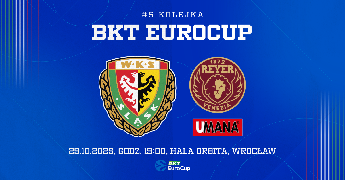 Mający obecnie bilans 2:2 koszykarski Śląsk Wrocław podejmie kolejnego rywala w prestiżowych rozgrywkach BKT EuroCup. Przeciwnikiem Trójkolorowych będzie włoska Umana Reyer Wenecja, która obecnie ma bilans 1:3. W składzie naszych przeciwników odnajdziemy między innymi byłego gracza NBA Denzela Valentine'a, który błyszczał w drużynie Chicago Bulls. Czeka nas zatem środowy wieczór pełen emocji!