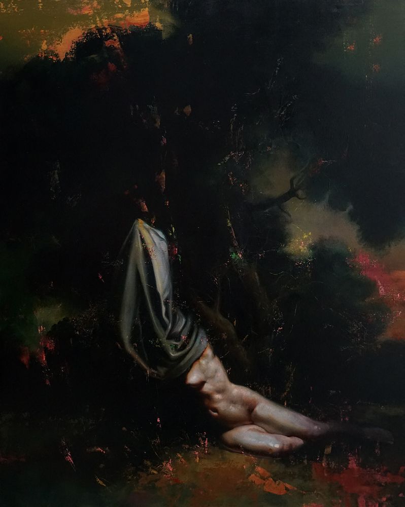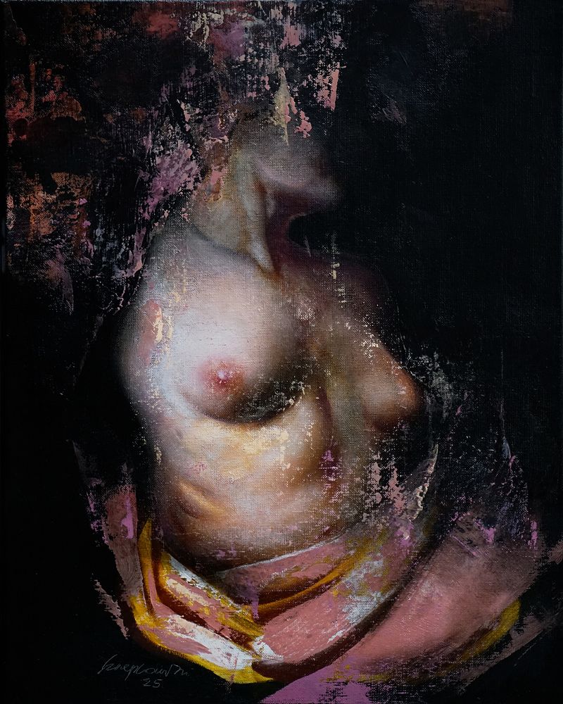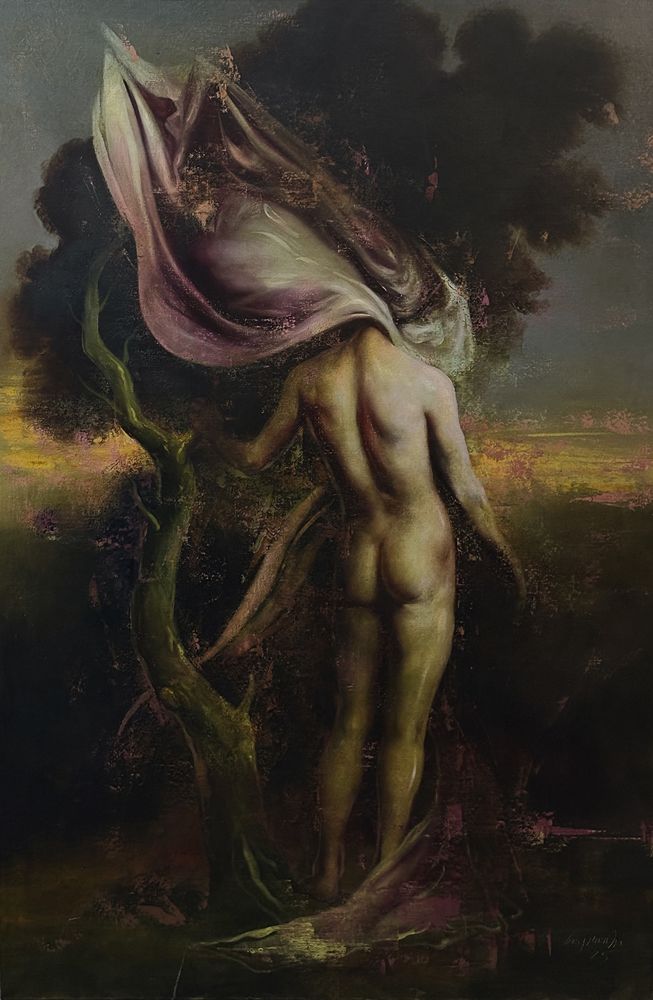 „To, co mroczne w tych obrazach, nie jest zaprzeczeniem światła, lecz jego warunkiem; podobnie jak niepokój bywa początkiem poznania. Między pięknem a lękiem, między nostalgią a nadzieją odnajduję obszar prawdziwego doświadczania. Tworzę obrazy jako miejsca zatrzymania – chcę, by widz wszedł w nie jak w stan, nie po odpowiedź, lecz po doświadczenie. Symbol nie jest jednoznaczny, a forma nie służy tylko dekoracji. Obraz ma oddychać, stawiać opór, a jednocześnie pozostać otwarty.”