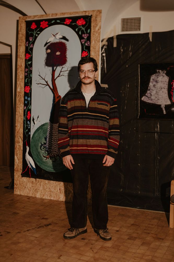 Aliaksandr Danilkin sięga do motywów białoruskiej tradycji i historii przemocy wpisanej w krajobraz. Totemiczne obiekty, rzeźby z chleba oraz słomiany pająk przywołują dawne rytuały ochronne. Kruche, organiczne materiały stają się znakami pamięci i próbą konstruowania tymczasowych schronień wobec niepokoju.