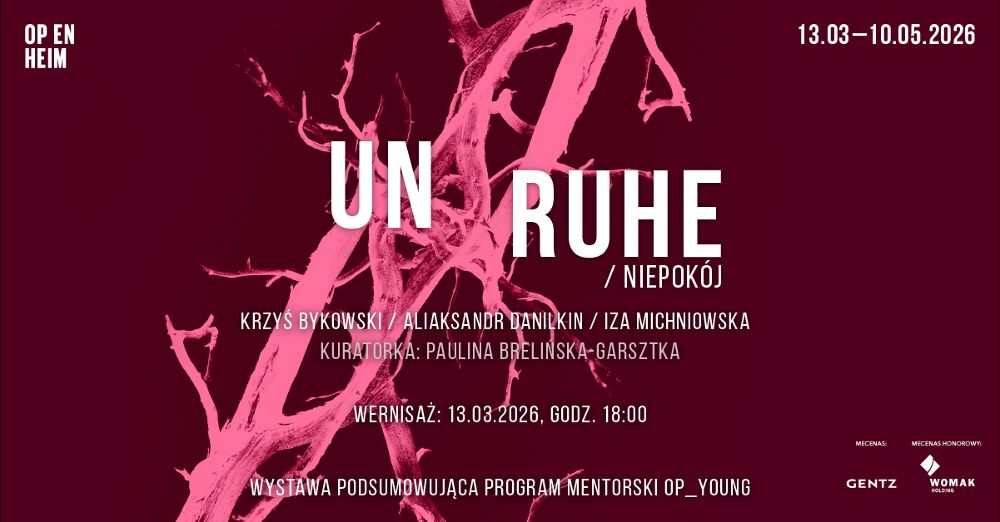 Plakat Wystawa ,,Unruhe/Niepokój'' (Krzyś Bykowski, Aliaksandr Danilkin, Iza Michniowska) Materiały prasowe OP ENHEIM