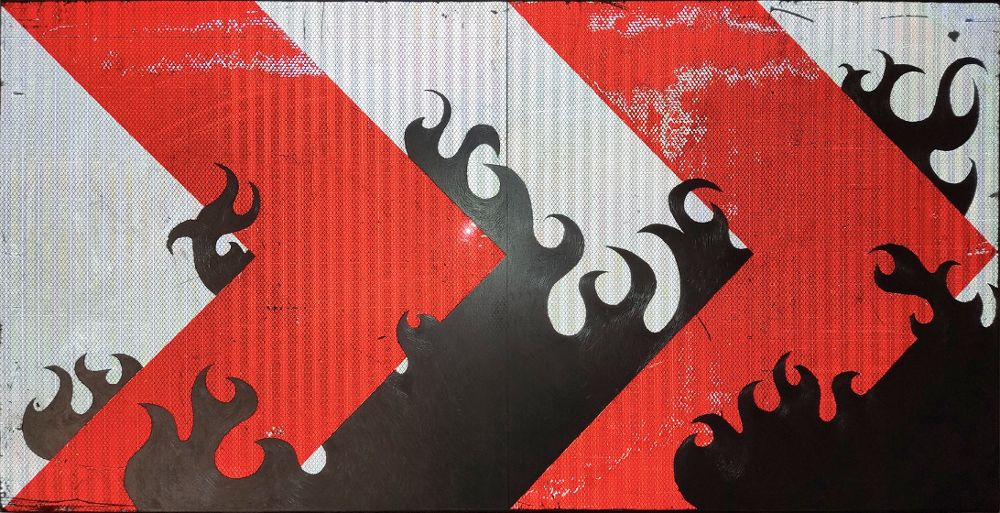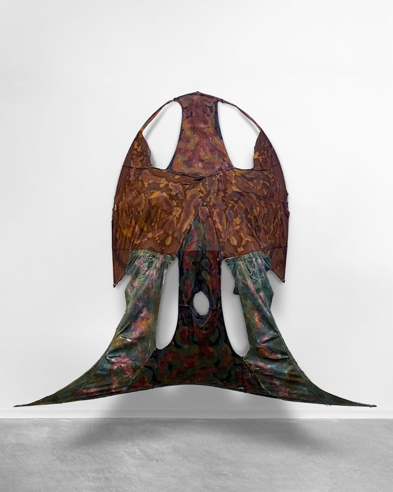 Abstrakcyjne, naturalnie barwione płótna Krzysia Bykowskiego odnoszą się do architektury i procesów erozji. Zacieki, rozmyte formy i napięta konstrukcja blejtramu sugerują kruchość systemów oraz materię wymykającą się kontroli. Jego malarstwo to zapis rozpadu, który równocześnie zawiera potencjał odradzania.
