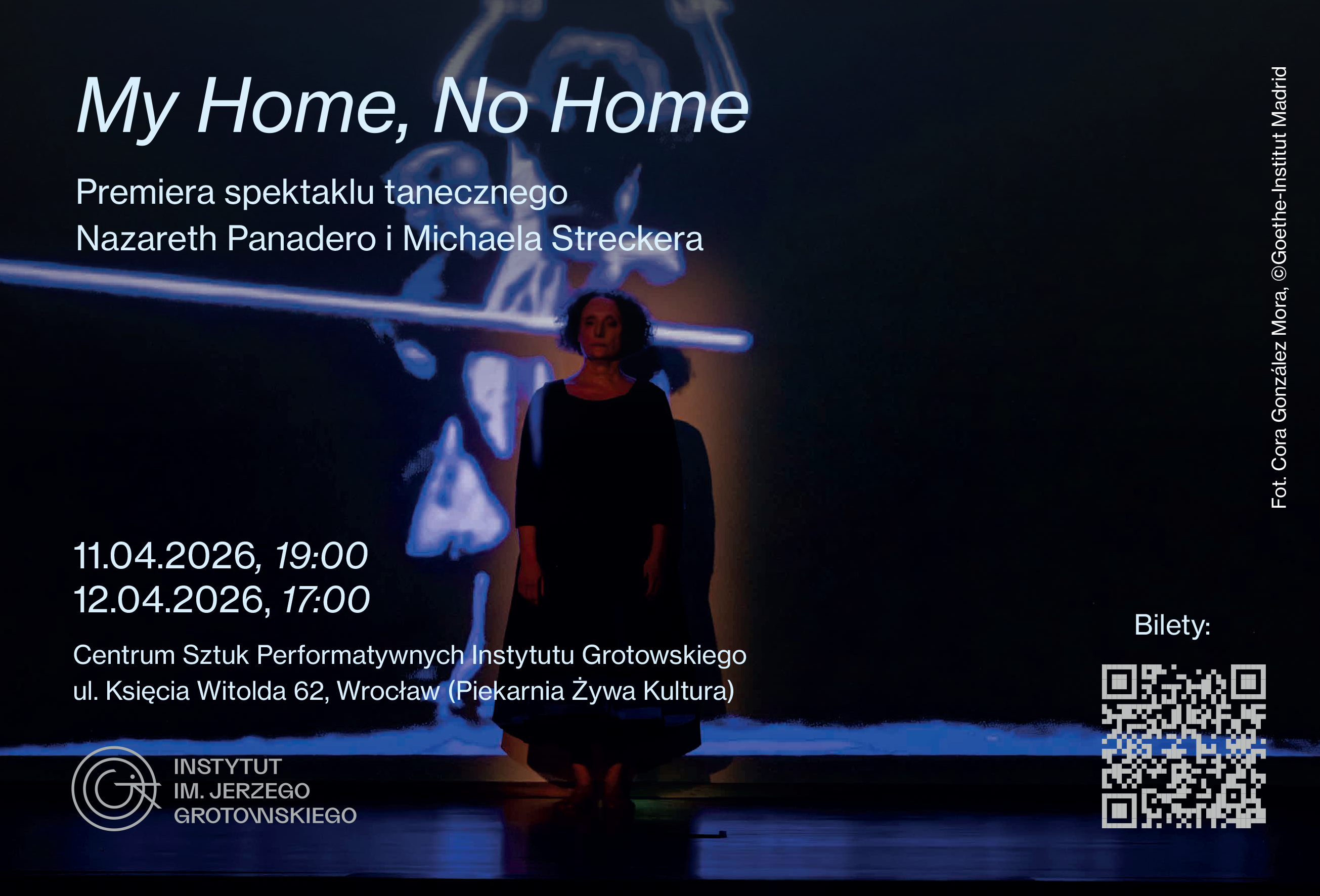 Plakat „My Home, No Home” - premiera spektaklu tanecznego Nazareth Panadero i Michaela Streckera materiały organizatora